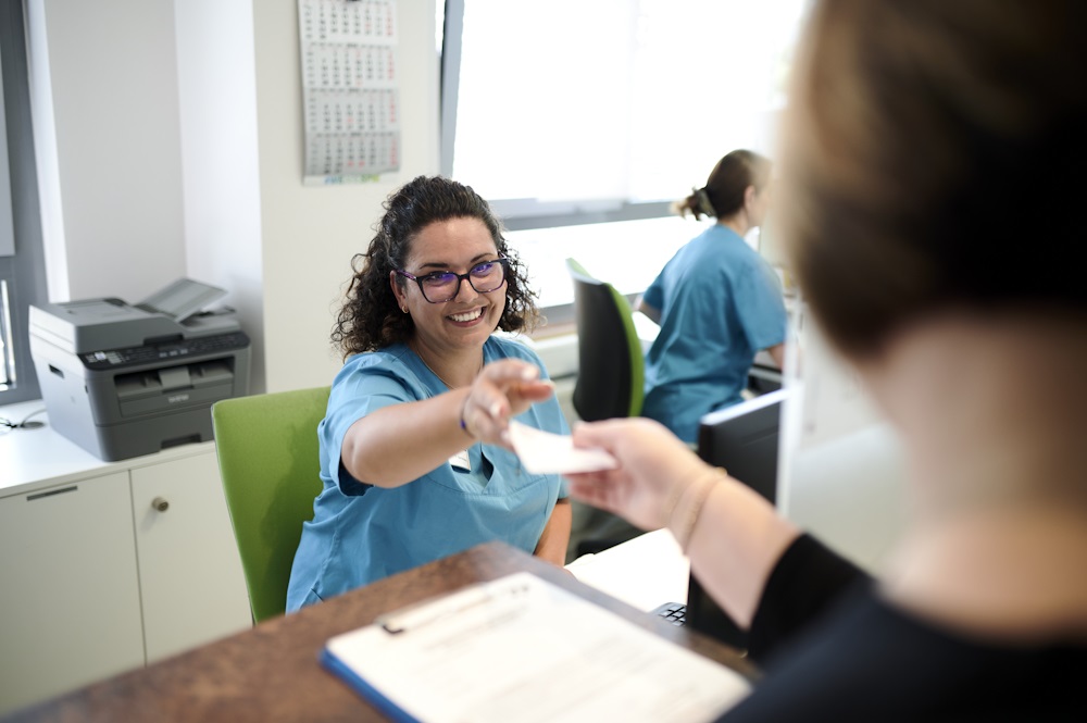 Wenn Sie zum ersten Mal zu uns kommen, benötigen wir zunächst Ihre Befunde und Krankheitsberichte, um uns ein Bild Ihrer Erkrankung machen zu können. Unserer Mitarbeiterinnen werden Ihnen daher nicht sofort einen Termin anbieten. Dies geschieht nach ärztlicher Sichtung der Unterlagen und Einschätzung der Dringlichkeit. In der Regel nehmen wir innerhalb weniger Werktage Kontakt mit Ihnen auf und machen einen Terminvorschlag.